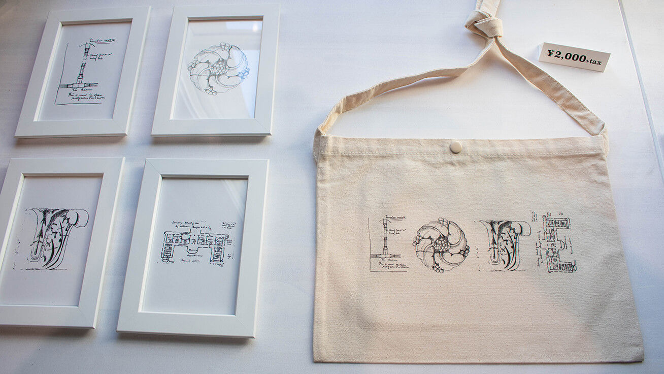 Three types of items — T-shirts, tote bags and compact sacoche shoulder bags — were available to customise at the workshop. Visitors were able to select from more than 170 designs, including Tatsuno's sketches, notes and drawings of Tokyo Station, to create a unique combination to suit individual tastes and preferences.